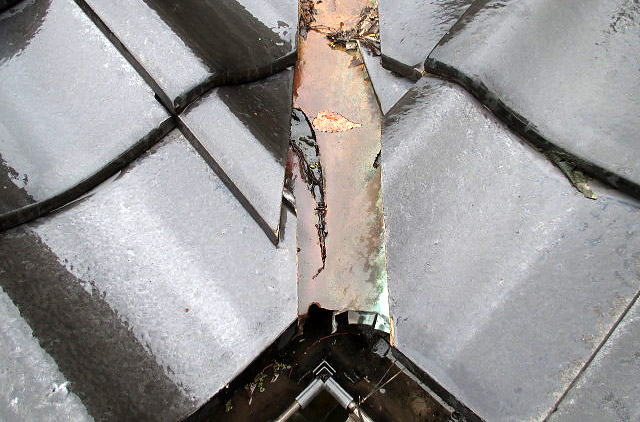 谷板には施工のしやすさから昔から「銅板」がよく使われてきましたが、酸性雨などの影響でこの銅板の谷板に穴が空いてしまって雨漏りが起こるケースが近年では多く見られます。