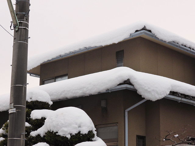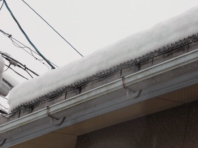 落雪し、樋にも雪が…。最近では温水器の上に設置する場合がよく見られます。